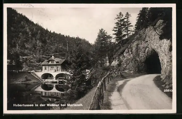 AK Mariazell, Strassenpartie am Hubertussee in der Walster