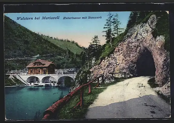 AK Mariazell, Walstern bei Mariazell, Hubertussee mit Stauwerk