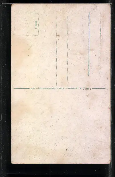 Personenbezogene Daten auf der Rückseite der Karte wurden durch blauen Textmarker unkenntlich gemacht. Die blauen Stellen sind auf die Vorderseite durchgeweicht und wirken sich negativ auf das Postkartenfoto aus