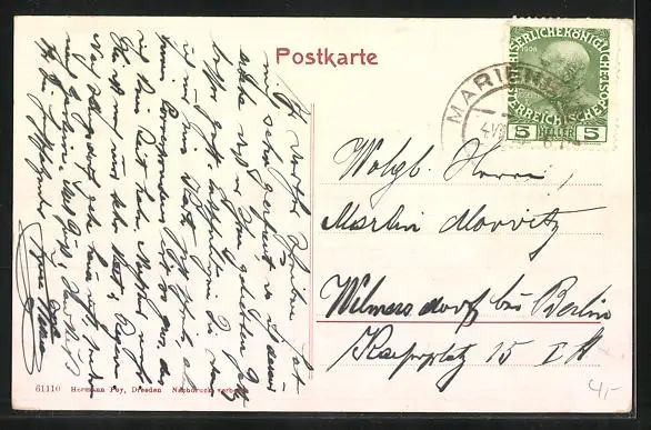 alte Ansichtskarte, gelaufen, Stempelspur, guter Zustand