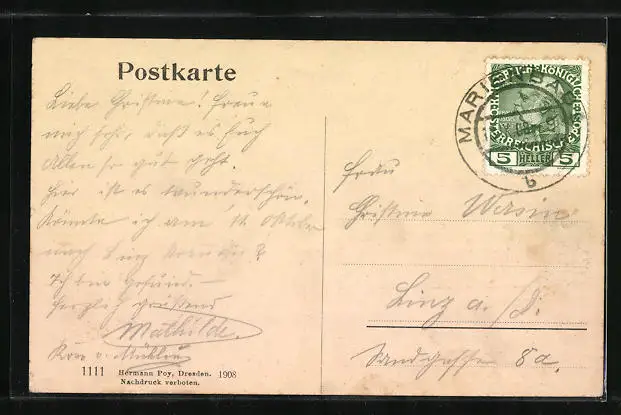 alte Ansichtskarte, gelaufen 1908, guter Zustand