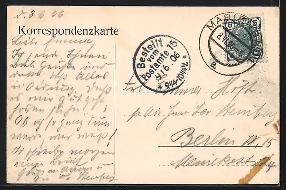 alte Ansichtskarte, gelaufen 1906, Stempelspur, guter Zustand