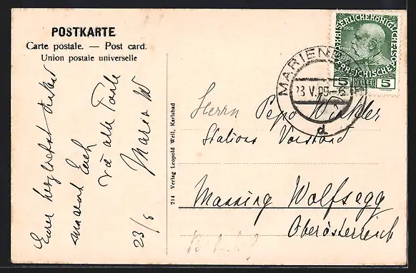 alte Ansichtskarte, gelaufen 1909, guter Zustand