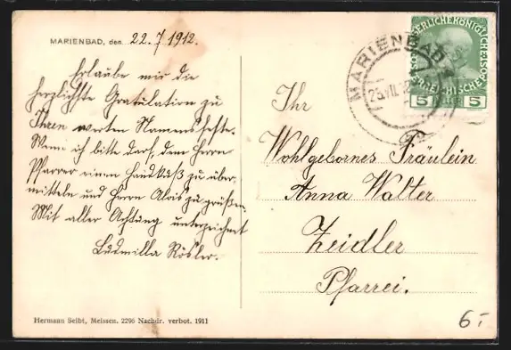alte Ansichtskarte, gelaufen 1912, guter Zustand
