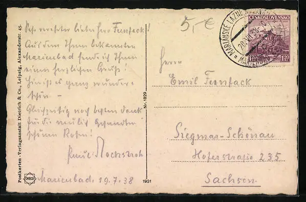 alte Ansichtskarte, gelaufen 1938, guter Zustand
