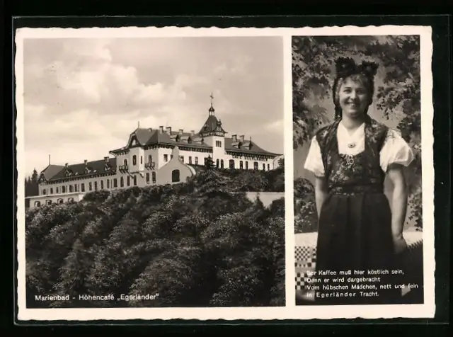 AK Marienbad, Höhencafe Egerländer, Mädchen in Egerländer Tracht