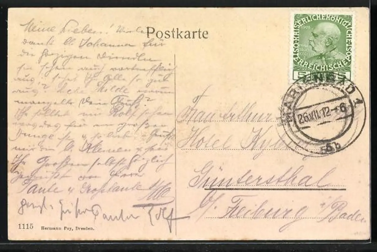 alte Ansichtskarte, gelaufen 1912, guter Zustand