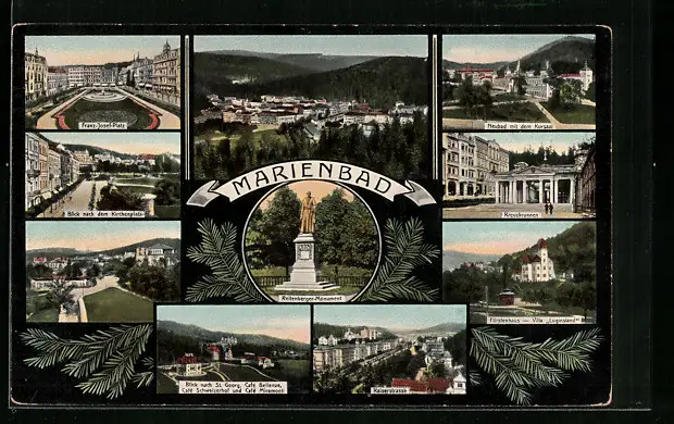 AK Marienbad, Kaiserstrasse, Kreuzbrunnen, Ortsansicht
