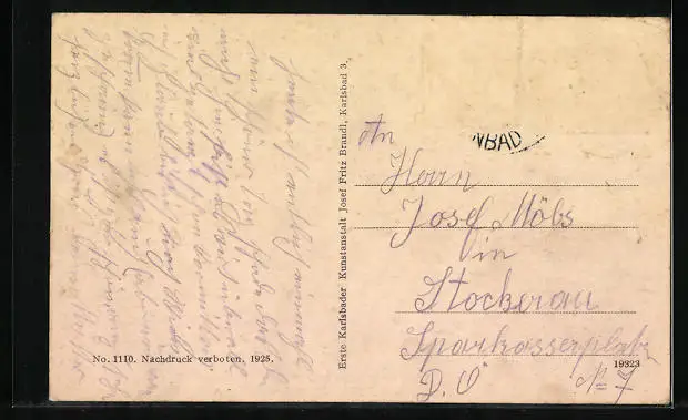 alte Ansichtskarte, gelaufen, Briefmarke entfernt, guter Zustand