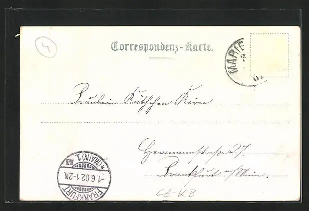 alte Ansichtskarte, gelaufen 1902, Briefmarke entfernt, Einriss re. oben, guter Zustand