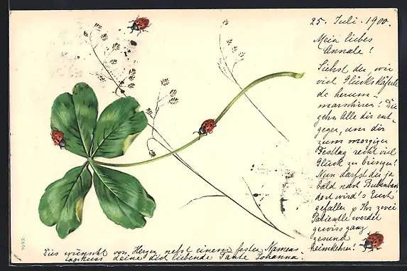 AK Marienkäfer auf einem Kleeblatt