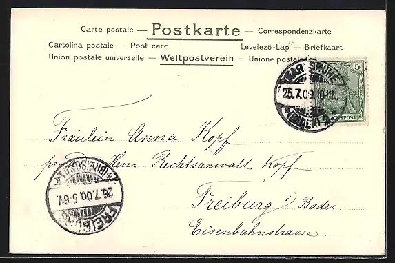 alte Ansichtskarte, gelaufen 1900, Stempelspur, guter Zustand