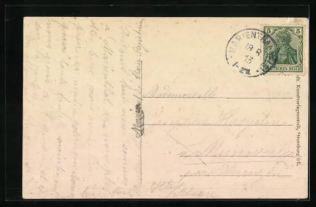 alte Ansichtskarte, gelaufen 1913, Eckknicke li., guter Zustand