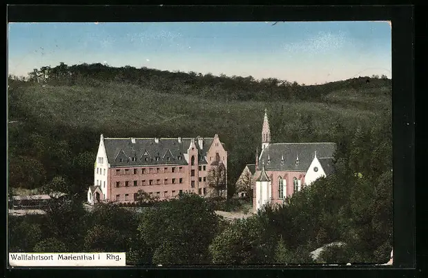 AK Marienthal i. Rhg., Ortspartie mit Kirche