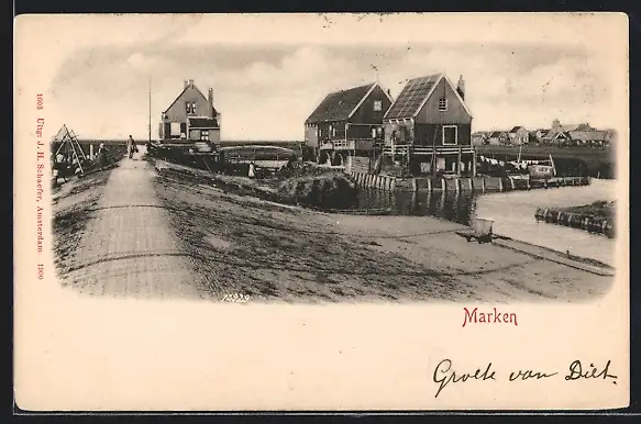 AK Marken, Ortspartie mit alten Häusern