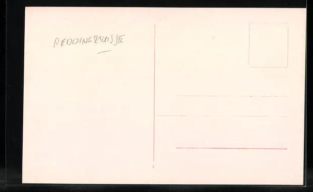 Personenbezogene Daten auf der Rückseite der Karte wurden durch blauen Textmarker unkenntlich gemacht. Die blauen Stellen sind auf die Vorderseite durchgeweicht und wirken sich negativ auf das Postkartenfoto aus