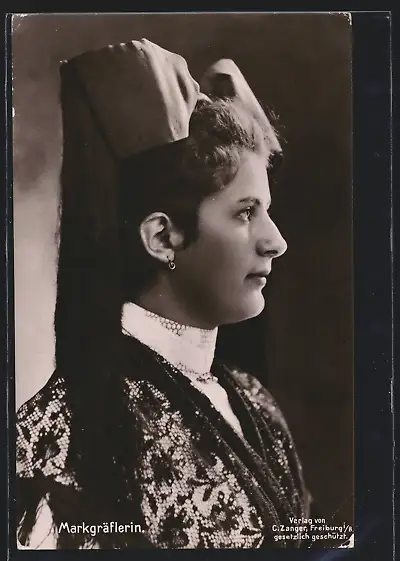 AK Markgräflerin, Dame in Schwarzwälder Tracht