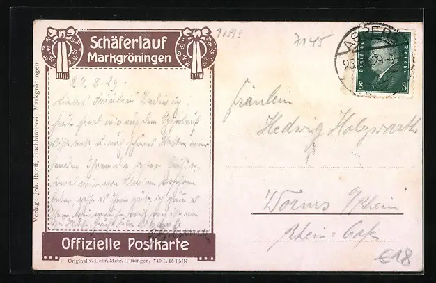 alte Ansichtskarte, gelaufen 1929, guter Zustand