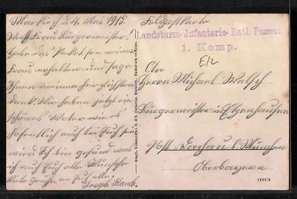 alte Ansichtskarte, gelaufen 1915 als Feldpost, guter Zustand