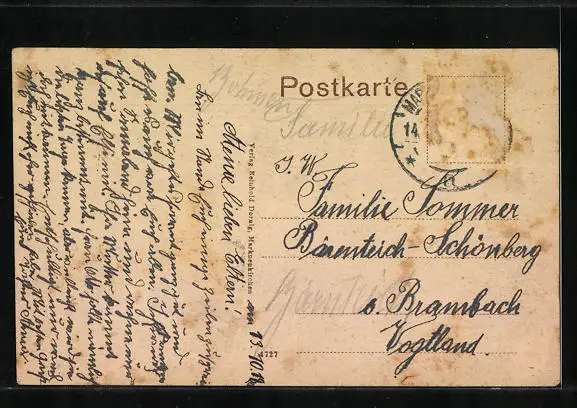 alte Ansichtskarte, gelaufen 1918, Briefmarke entfernt, guter Zustand