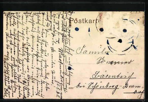 alte Ansichtskarte, gelaufen 1920, Briefmarke entfernt, rückseitig Oberflächenschaden, guter Zustand