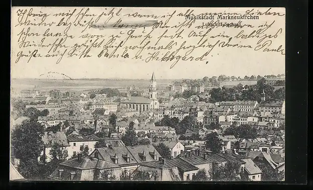 AK Markneukirchen, Zeppelin Sachsen über dem Ort