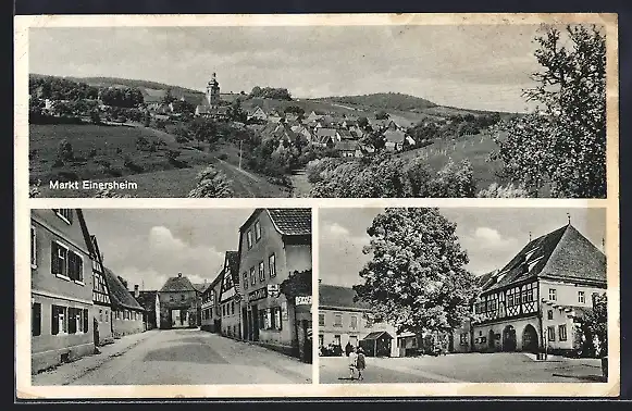 AK Markt Einersheim, Strassenpartie im Zentrum, Panoramablick auf das Dorf