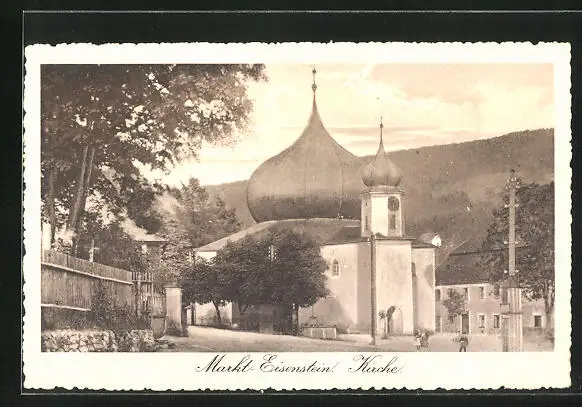 AK Markt-Eisenstein /Böhmerwald, Strassenpartie mit Kirche
