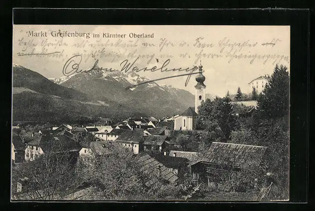 AK Markt Greifenburg, Teilansicht aus der Vogelschau