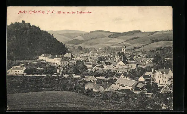 AK Markt Kirchschlag, Teilansicht mit der Schlossruine