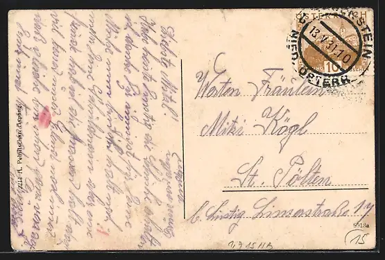 alte Ansichtskarte, gelaufen 1931, Einriss oben mittig, guter Zustand