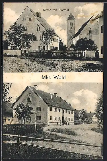 AK Markt Wald, Kirche mit Pfarrhof, Ortspartie