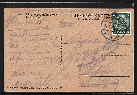 AK Markt Wald, Totalansicht vom Flugzeug aus