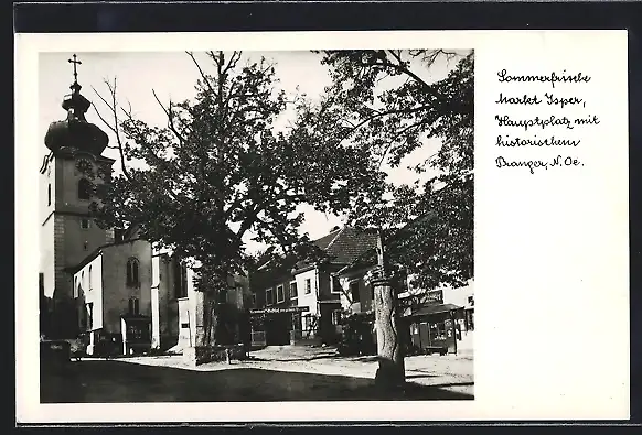 AK Markt Ysper, Hauptplatz mit historischen Pranger