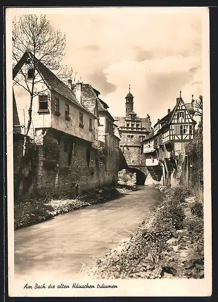 AK Marktbreit a. Main, Alte Häuser am Bach