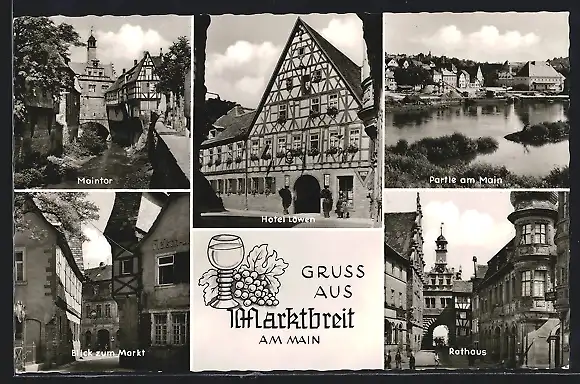 AK Marktbreit am Main, Hotel Löwen, Rathaus, Maintor