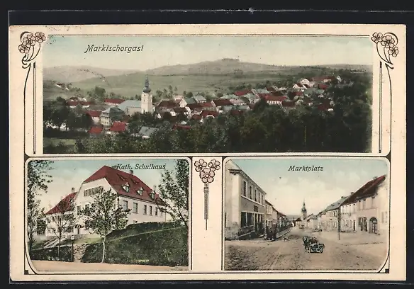 AK Marktschorgast, Teilansicht, Katholisches Schulhaus, Marktplatz