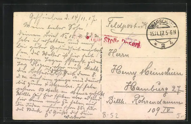 alte Ansichtskarte, gelaufen 1917 als Feldpost, guter Zustand