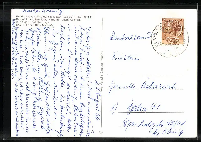 AK Marling b. Meran, Gasthaus Olga mit Terrasse