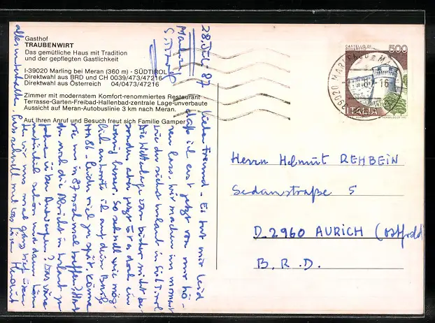 alte Ansichtskarte, gelaufen 1987, guter Zustand