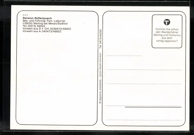 AK Marling bei Meran, Hotel-Pension Rottenpuech mit Innenansicht