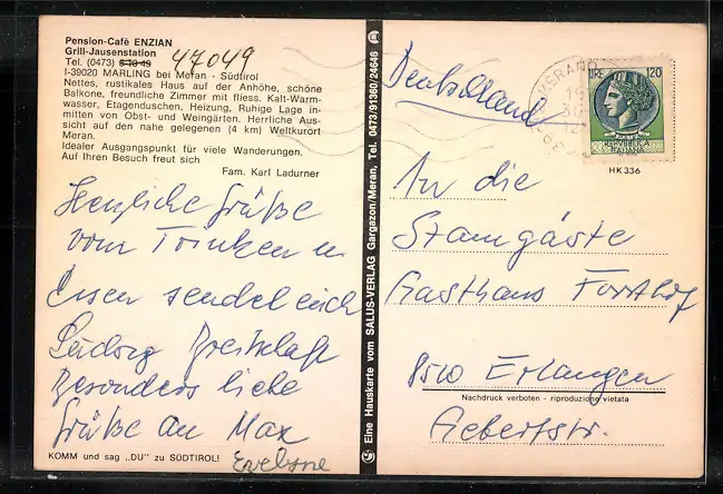 AK Marling bei Meran, Pension-Cafe Enzian mit Grillstation