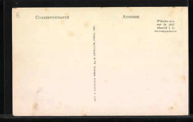 Personenbezogene Daten auf der Rückseite der Karte wurden durch blauen Textmarker unkenntlich gemacht. Die blauen Stellen sind auf die Vorderseite durchgeweicht und wirken sich negativ auf das Postkartenfoto aus