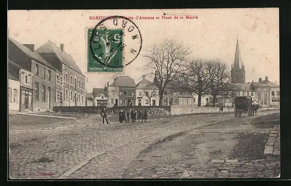 AK Maroilles, Route d`Avesnes et Place de la Mairie