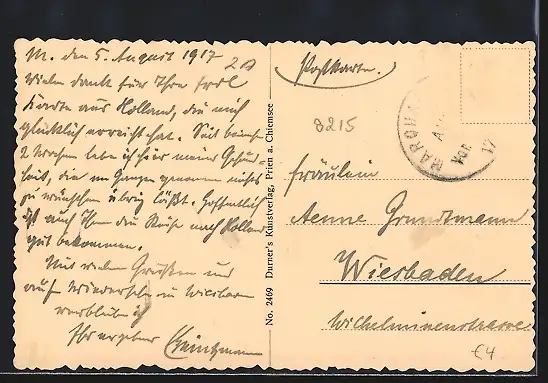 alte Ansichtskarte, gelaufen 1917, Briefmarke entfernt, guter Zustand