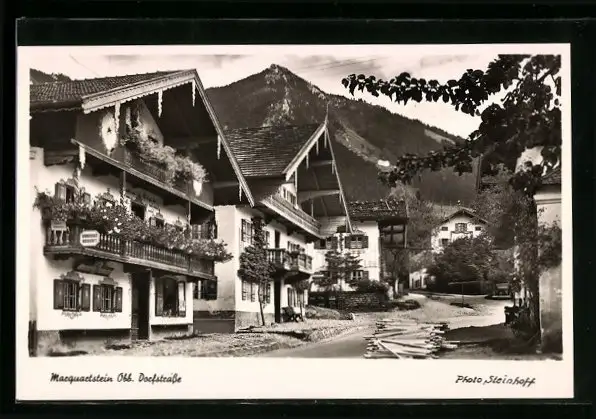 AK Marquartstein /Obb., Dorfstrasse mit Bergspitze