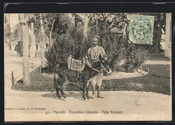 AK Marseille, Exposition Coloniale, Type Tunisien, Tunesier mit Maultier bei der Ausstellung
