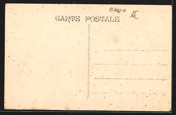 Personenbezogene Daten auf der Rückseite der Karte wurden durch blauen Textmarker unkenntlich gemacht. Die blauen Stellen sind auf die Vorderseite durchgeweicht und wirken sich negativ auf das Postkartenfoto aus