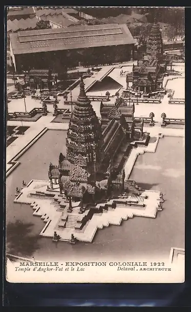 AK Marseille, Exposition coloniale 1922, Temple d`Angkor-Vat et le Lac