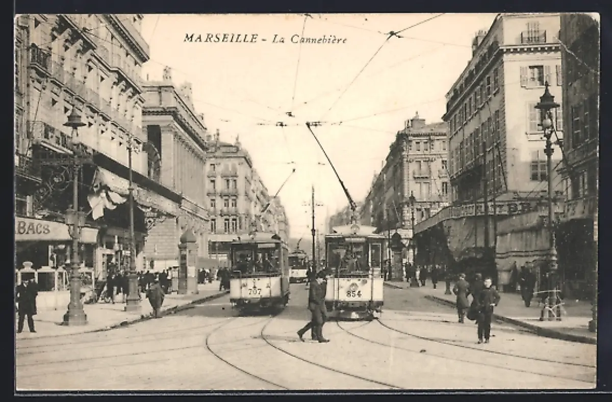 AK Marseille, La Cannbiere et les tramways, Strassenbahn